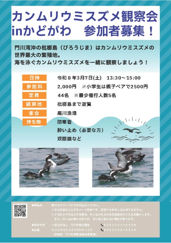 カンムリウミスズメ観察会inかどがわ参加者募集!